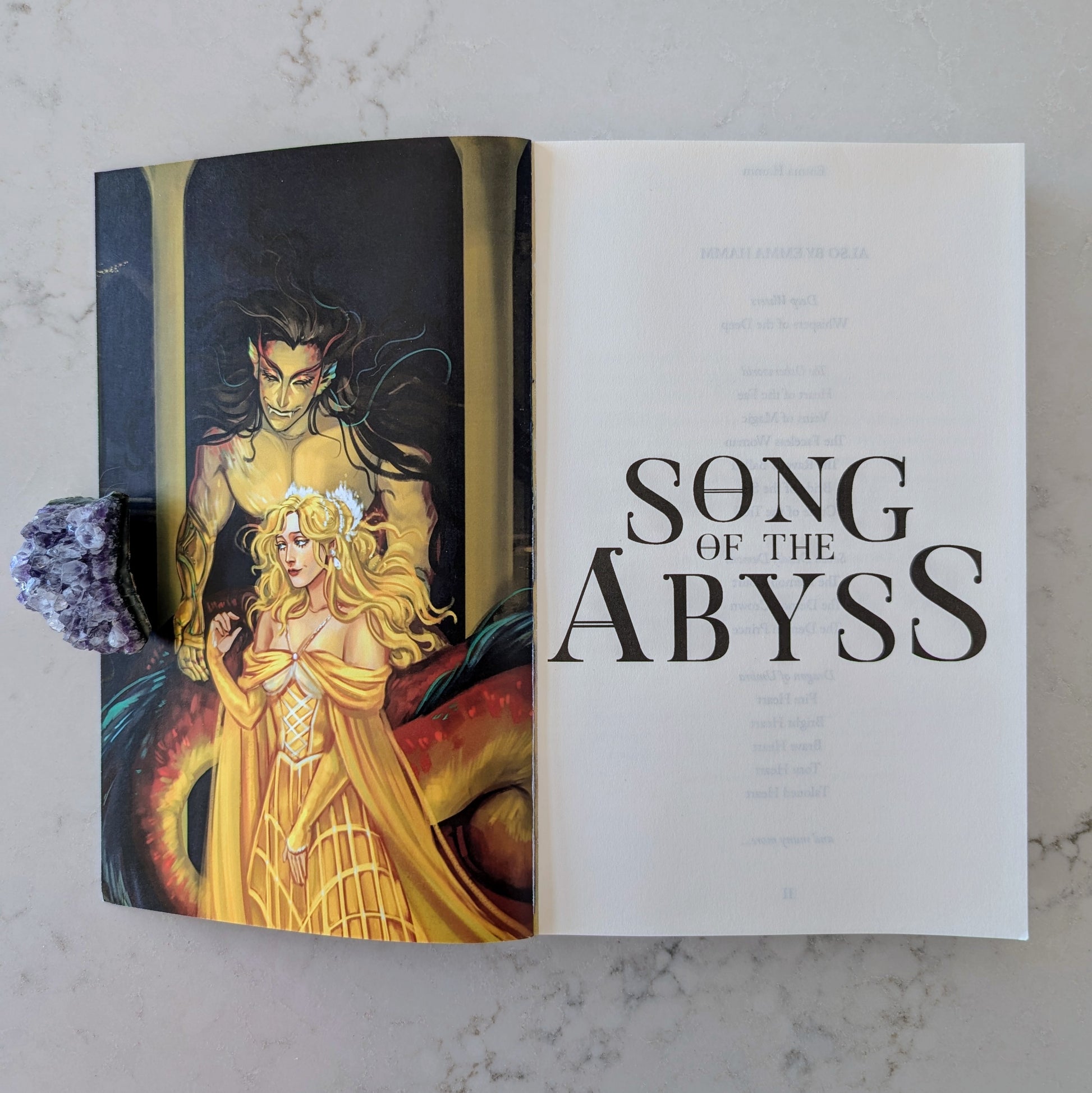 A signed paperback of Song of the Abyss by Emma Hamm.