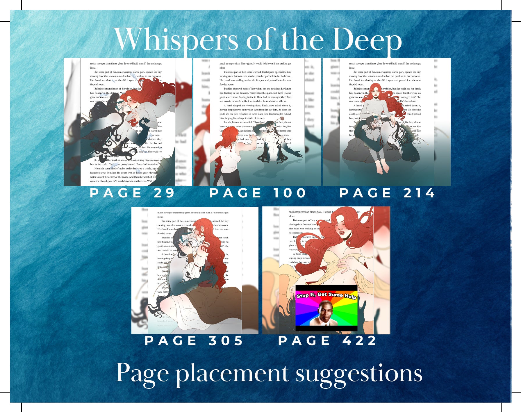 A 5-pack of author-exclusive, vellum page overlays for Whispers of the Deep by Emma Hamm.